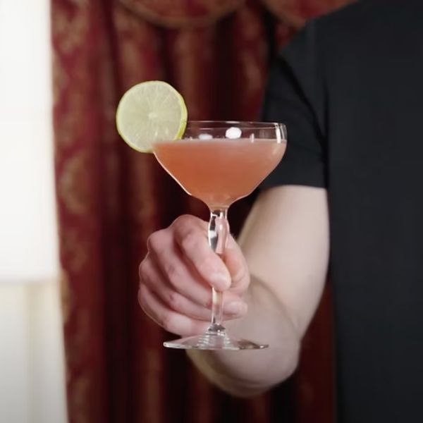 - Shake ingredients with ice. Strain and serve garnished with a lemon peel.