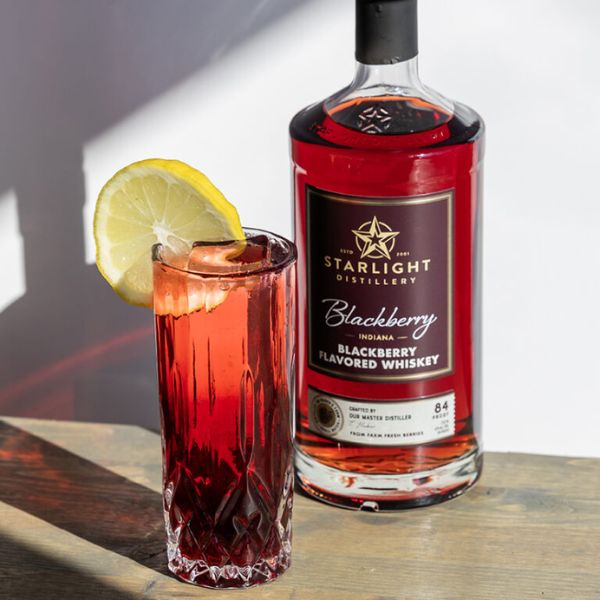 - Combine Starlight Blackberry Whiskey, homemade hibiscus agua fresca, and ice. Stir and top with soda water. Add an orange wheel as garnish.